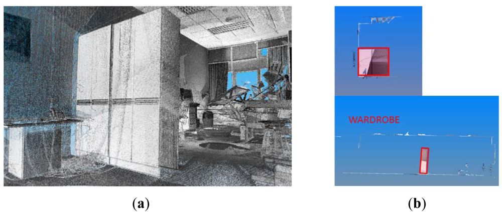 - Adan, A.; Huber, D. 3D reconstruction of interior wall surfaces under occlusion and clutter. Proceedings of the 3D Imaging, Modeling, Processing, Visualization and Transmission Conference, Hangzhou, China, 16–19 May 2011.