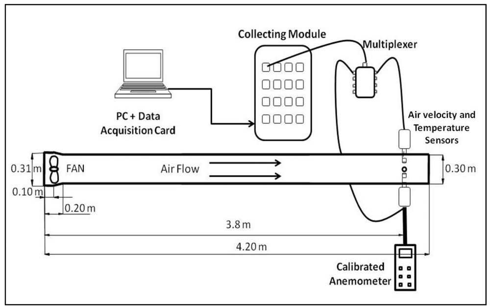 A wind tunnel was designed to calibrate the velocity sensors (Figure 4).