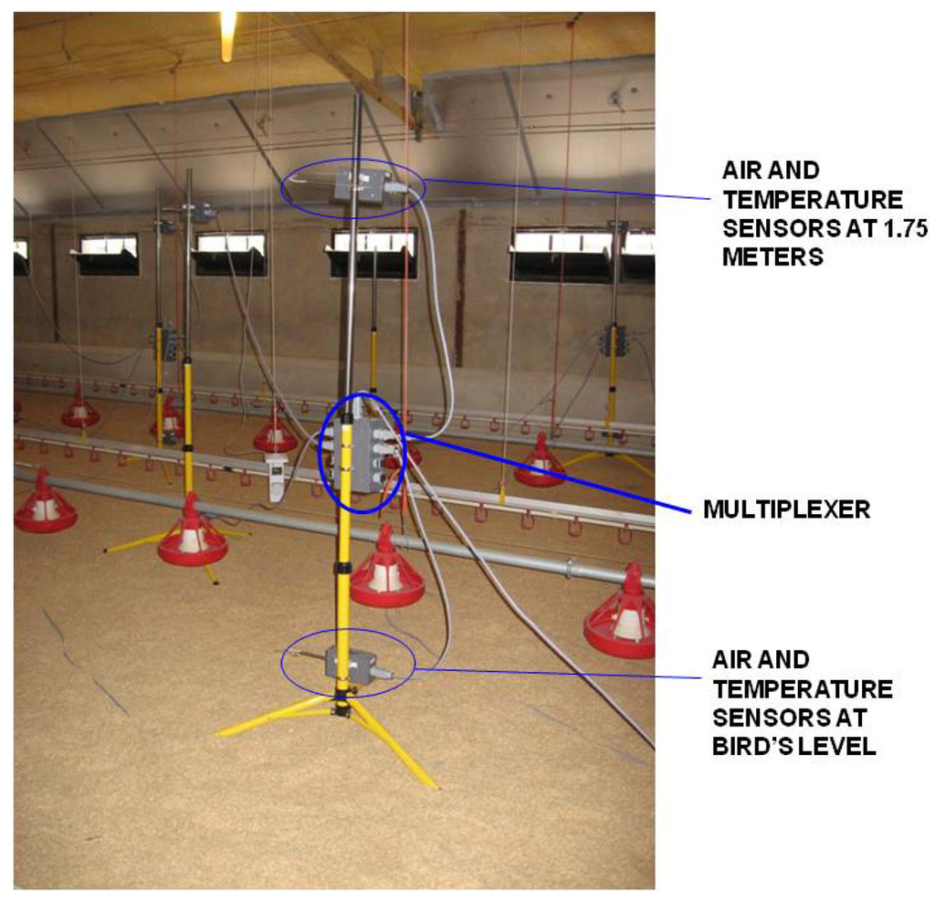 Under field tests in a commercial broiler farm, the multipoint sensor system allowed for the measurement of a high number of input signals from different locations with minimum internal delay in acquiring signals. In terms of air velocity, the results allow to conclude that the variation among sensors was not significant. It also demonstrated to be robust and portable and could be used without presence of any operator which could disturb air velocity profiles.