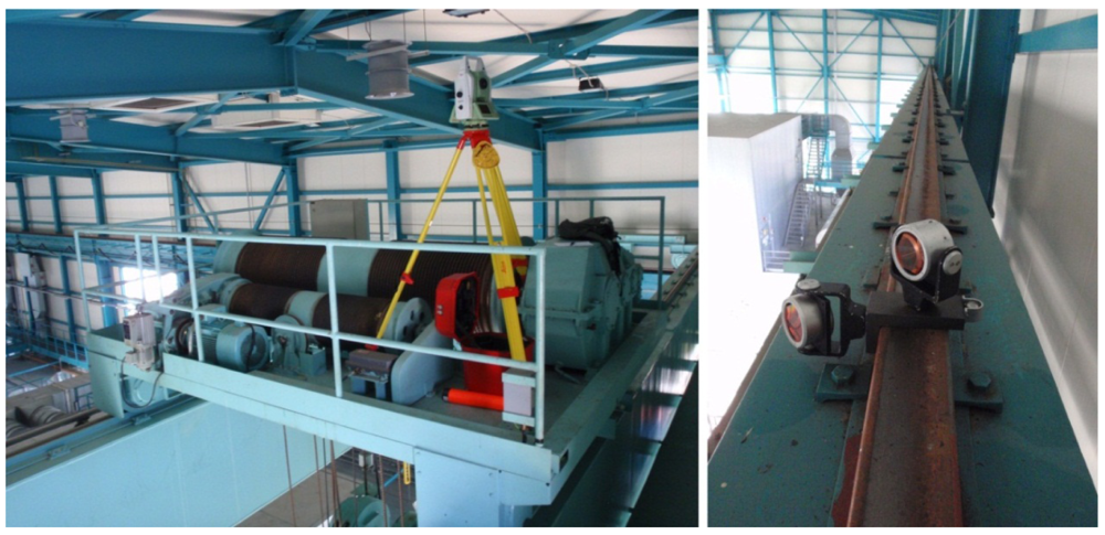 The crane rail is measured using a classical polar surveying method for detail points. Characteristic points are determined indirectly by measuring the position of the “L” platform. According to the required precision and the principles of the method, the proposed approach may be used if two conditions are met: