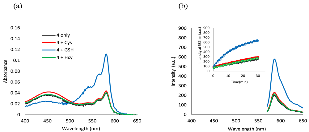 - Chen, X.; Zhou, Y.; Peng, X.; Yoon, J. Fluorescent and colorimetric probes for detection of thiols. Chem. Soc. Rev. 2010, 39, 2120–2135. [Google Scholar]