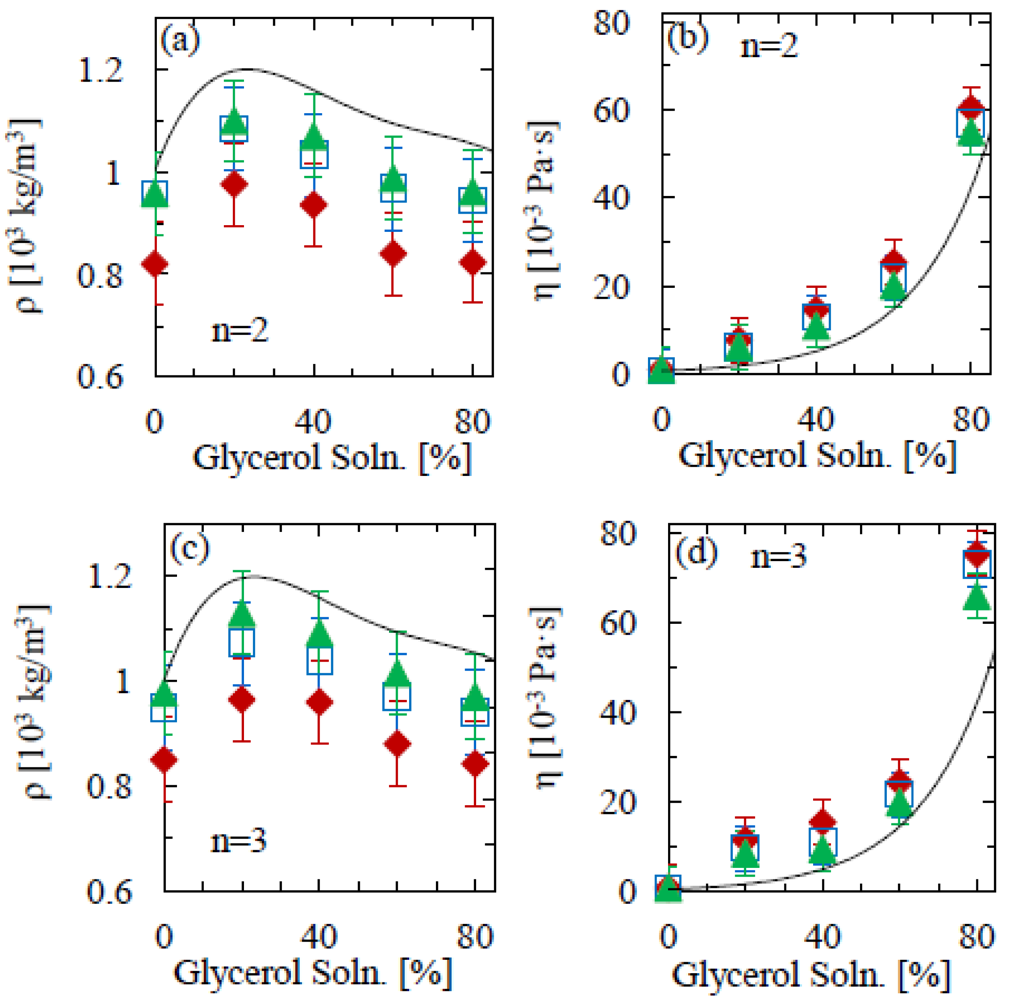 We repeat the procedure for glycerol solutions of the same percentage concentration up to 80%, the results of which are shown in Figure 3.