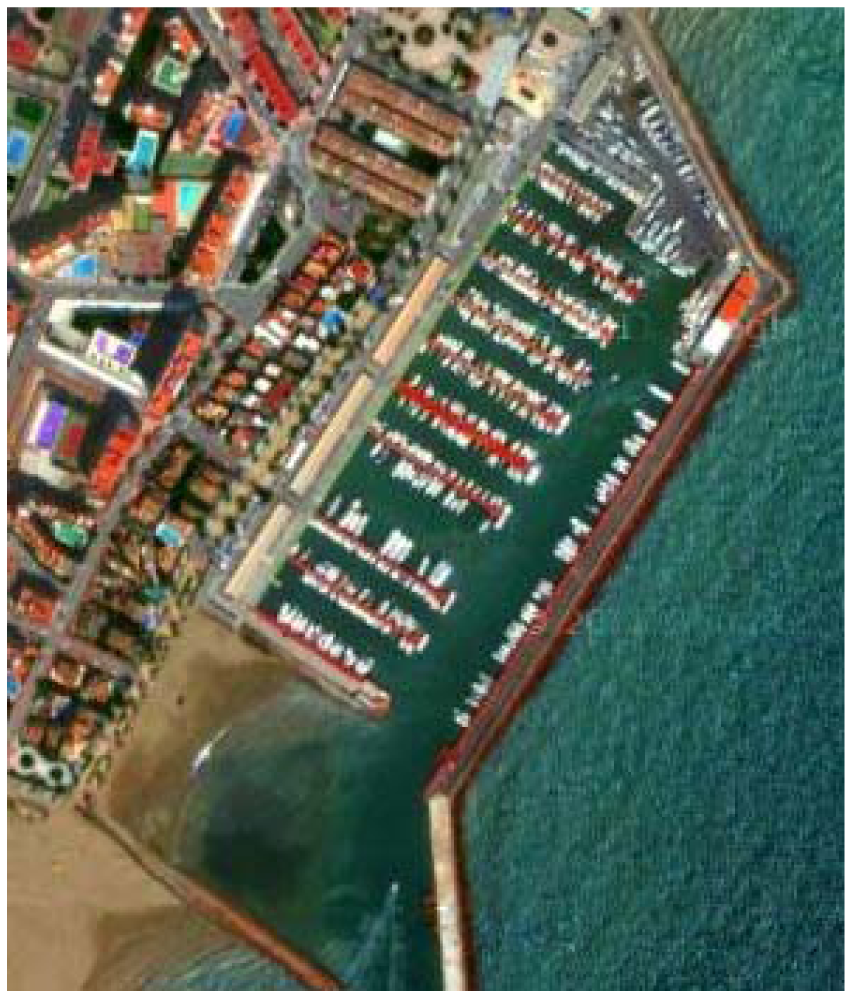 The transmission distance reached depends on transmission power amplification. The ITACA modem has been tested with 12 mW, 48 mW, and 108 mW. In October 2011, the modem reached 240 meters with 108 mW in a small marina shown in Figure 10. This short/medium range is useful for the off-shore and coastal monitoring applications that are currently funding the modem development. Overall modem consumption in transmission will be 108 mW + 12 mW (MCU consumption). This is the lowest reported value for short range links.