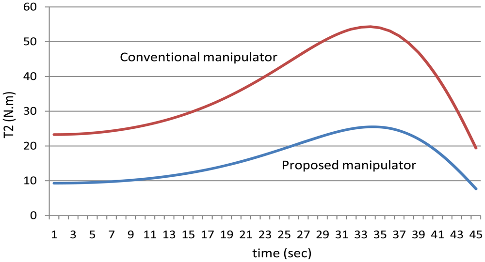 Figure 11 shows the values of the torques of the second joint using the manipulators.