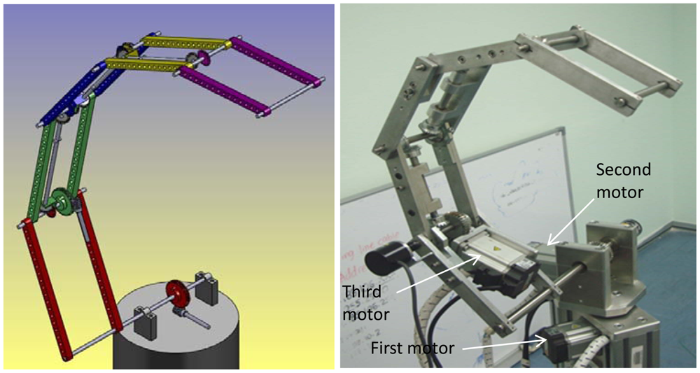 Theoretically, for a structure of the robot manipulator one actuator can be mounted on each link to drive the next link via a speed reduction unit, but actuators and speed reducers installed on the distal end become the load for actuators installed on the proximal end of a manipulator, resulting in a bulky and heavy system [1]. To reduce the weight and the inertia of a robot manipulator, many mechanisms have been proposed so far to remove the weight restriction. Some reported by [2,3] include:
