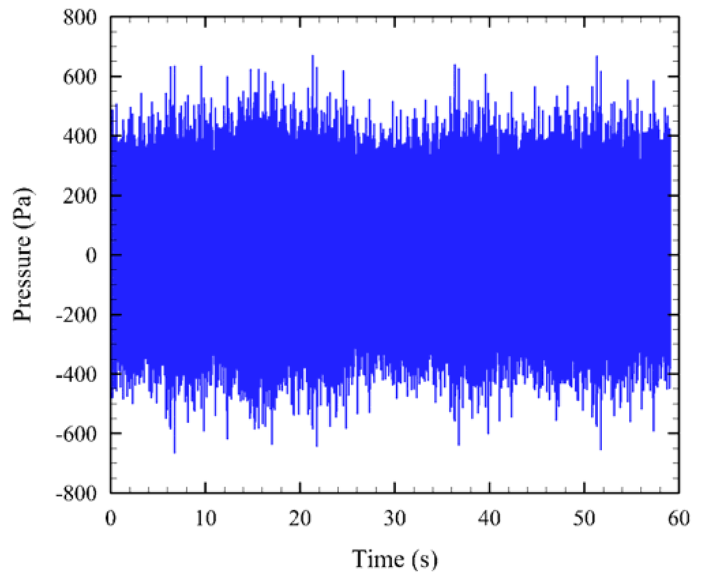 AAMI was used to post-process all exposure and control (i.e., ambient) sound signals. The data for six 24-h tests were processed. The sound exposure signal, which was on continuously through the 24-h exposure period, was sampled using a USR in 1-min segments to keep file sizes manageable. All the 1-min sound files (exemplified in Figure 5) were batch-processed to estimate their SPLpeak and SPLrms values. For each day, a random 1-min segment was further processed to obtain spectrogram and power spectral density (PSD) plots (Figure 6).
