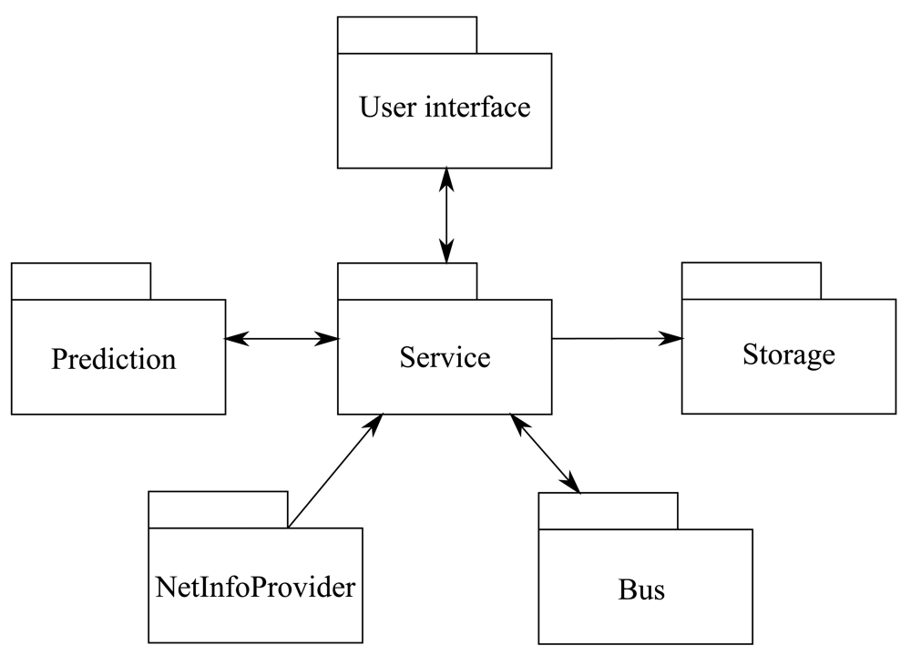 Bus. This package is intended to manage the bus lines information: management of the database explained in the previous subsection and search of additional information (e.g., the time until a bus arrives at some stop).