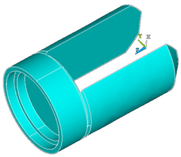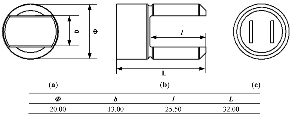 The tuning fork is shown in Figure 6(a), and is supported by a flange whose stiffness is approximately infinite, shown in Figure 6(b). The flange does not vibrate, therefore, it does not affect the liquid density measurement process.