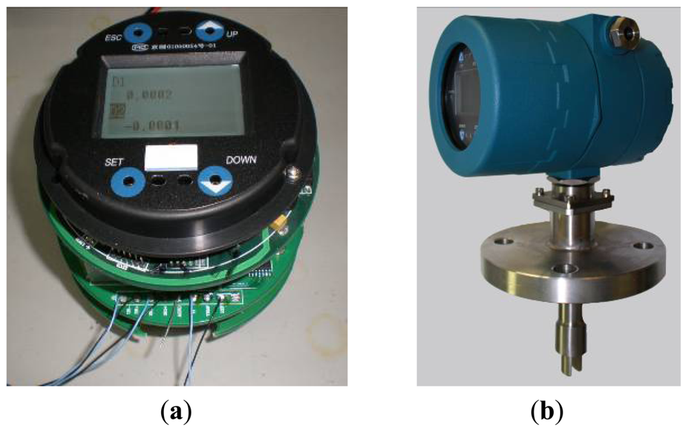 The on-line density sensor was developed initially for monitoring the retrieval operations from the radioactive waste storage tanks at the Hanford Site in Eastern Washington State (USA), and it is also of interest for many other applications [2,3]. The sensor can be used in a pipeline for process control in the petrochemical industry, in the production of chemical reagents, in food processing, in the production of paper, in the production of textiles, and so on. The sensor can also be placed in a vat to determine the density of the contents [4]. At present, the study on the liquid density measurement abroad is focused on ultrasonic method, but the ultrasonic measurement devices can only reach accuracies of 0.1% [5], which are still far from those achievable with laboratory measurement instruments that can reach 0.01% or better. Therefore, more accurate measurement sensors must be developed [6].