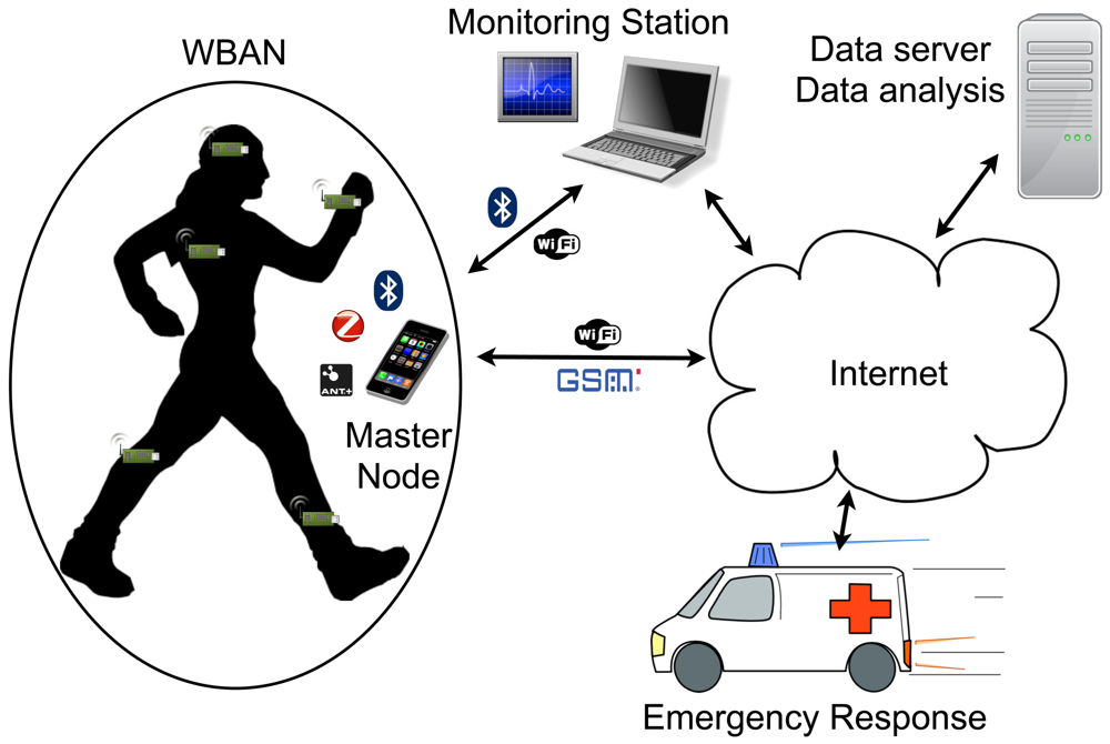 The WBAN has one network coordinator or Master Node. This can be a dedicated device or any PDA or a smartphone. It acts as a gateway between the WBAN and the larger scale network. The master node relays the BAN information to a monitoring station that can provide further services through a Local Area Network or the Internet. If the master node is WiFi or GSM enabled, it can directly transfer data trough the Internet. This interface is already well developed and standardised; however, redundancy is required at this level for critical applications, as this is a single point of failure in the network.
