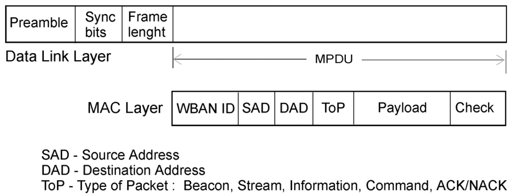 The whMAC communication packet is shown in Figure 5. Its MAC layer consists of:
