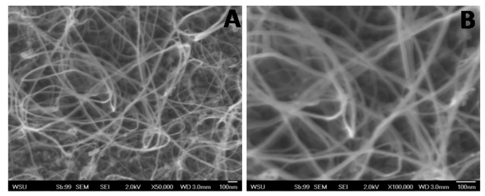 By definition, a biosensor is a self-contained integrated device that is capable of providing specific quantitative or semi-quantitative information using a biological recognition element, which retains direct spatial contact with an electrochemical transduction element [1]. In an effort to achieve highly targeted and diverse analyte detection, numerous material platforms are currently being explored for their potential in sensing systems. However, due to their established electrical transmission properties [2] and the ability for direct conjugation with other molecules, carbon nanotubes (CNTs) have recently gained significant attention in the biosensors community. CNTs are also distinctive in the respect that the majority of their atoms reside on or near the particle surface, with the consequence that molecular modifications have a significant impact on its electrical properties [3]. An additional advantage of nanotubes is that owing to their high surface area to volume characteristic, they inherently possess a greater number of available binding sites for chemicals, biomolecules, and even other nanoparticles. With the addition of this increased surface area available for target attachment, an increased sensitivity would be expected [4,5]. The modification of CNT surface chemistry has been previously demonstrated for uses in novel electronics, filtration media, biomedical devices, and biosensors [6,7].