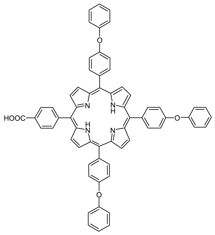 The porphyrin 5-(4-carboxyphenyl)-10,15,20-tris(4-phenoxyphenyl)-porphyrin (P1) was synthesized as presented below. The porphyrins 5-(4-pyridyl)-10,15,20-tris(3,4-dimethoxyphenyl)-porphyrin (P2) and 5-(4-pyridyl)-10,15,20-tris(4-phenoxyphenyl)-porphyrin (P3) were synthesized, purified and characterized in accordance with previously published procedures [15].