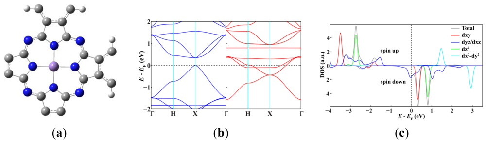 - Zhou, J.; Sun, Q. Magnetism of phthalocyanine-based organometallic single porous sheet. J. Am. Chem. Soc. 2011, 133, 15113–15119. [Google Scholar]
