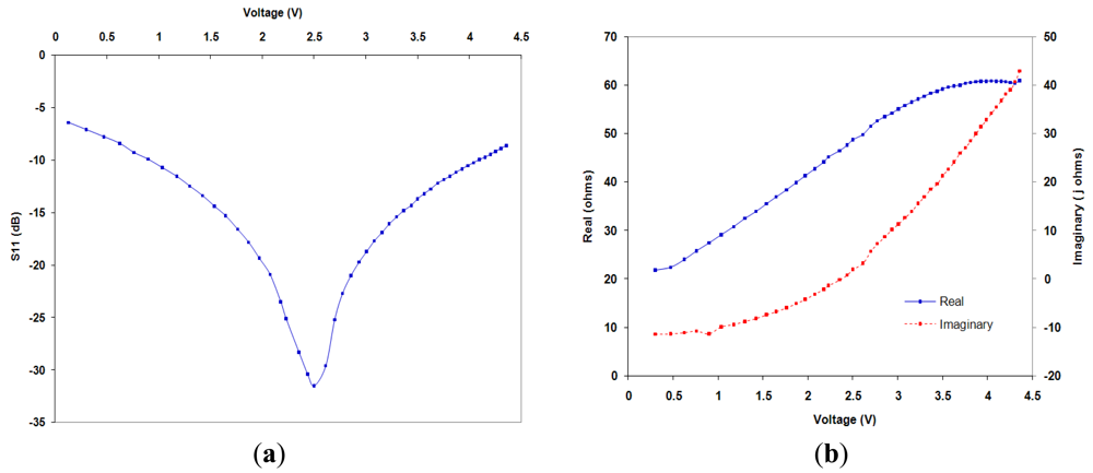 Figure 7(b) shows the impedance change of the as the storage voltage increases the imaginary part of the input impedance becomes more inductive (red) and the resistive component increases (blue).