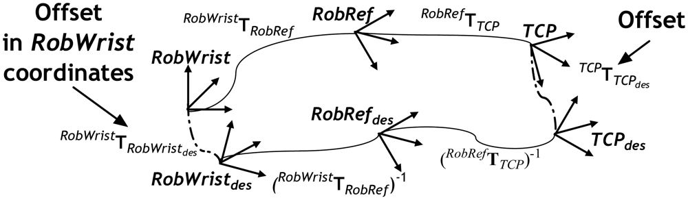 As described before, the system's control loop uses RobRefTRobWrist, this can now be determined by calculating: