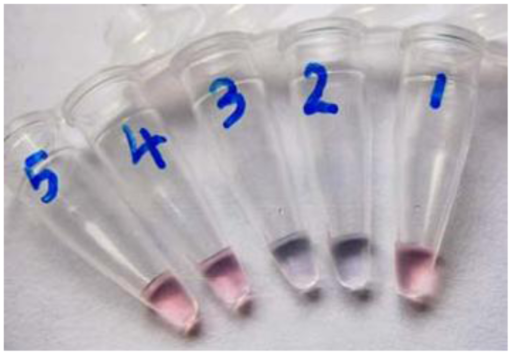 - Elghanian, R.; Storhoff, J.J.; Mucic, R.C.; Letsinger, R.L.; Mirkin, C.A. Selective colorimetric detection of polynucleotides based on the distance-dependent optical properties of gold nanoparticles. Science 1997, 277, 1078–1081. [Google Scholar]