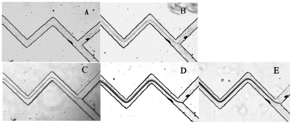 Microfluidic chips with Y shape and zigzag microchannels were firstly fabricated according to standard photolithographic methods [21]. Then a negative master was prepared on the silicon wafer by SU-8 photoresist, and a plasma etcher was used to realize the passivation of the master. The prepared master was placed in a glass bottom dish. After that, PDMS prepolymer (10:1 v/v mixture) was degassed and cast onto the master. After heating for 2 h at 80 °C, the PDMS was removed from the substrate and the holes punched with corresponding metal pipes. We used a flat PDMS slab (3 mm thick) as the substrate that bonding with the prepared PDMS layer to form the channels for chemical reaction. The dimensions of the finished microchannels in the chip are 100 μm (width) × 30 μm (height), and the whole chip are 3.5 cm (width) × 5 cm (length).