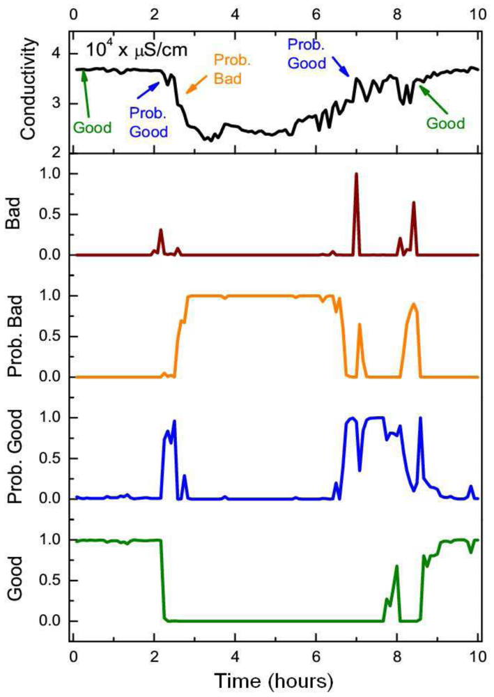 After the network was trained, the operational phase of quality assessment proceeded. As each sensor reading streamed into the information system, a quality state inference was performed upon its corresponding DBN: