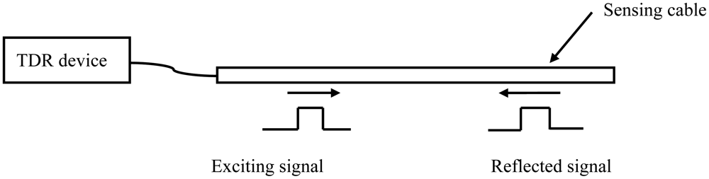 TDR technology is something like radar (Figure 1). A TDR device sends an exciting electrical signal into a TDR sensing cable. The exciting electrical signal can be a short-time pulse or a fast-leading-edge step electrical signal. The electrical signal will be reflected back at the position where the cable impedance is not continuous. This discontinuity can be caused by the change of the environment around the cable or the change of the sensing cable structure. According to the reflected signal waveform, the environmental situation along the cable can be measured and located.