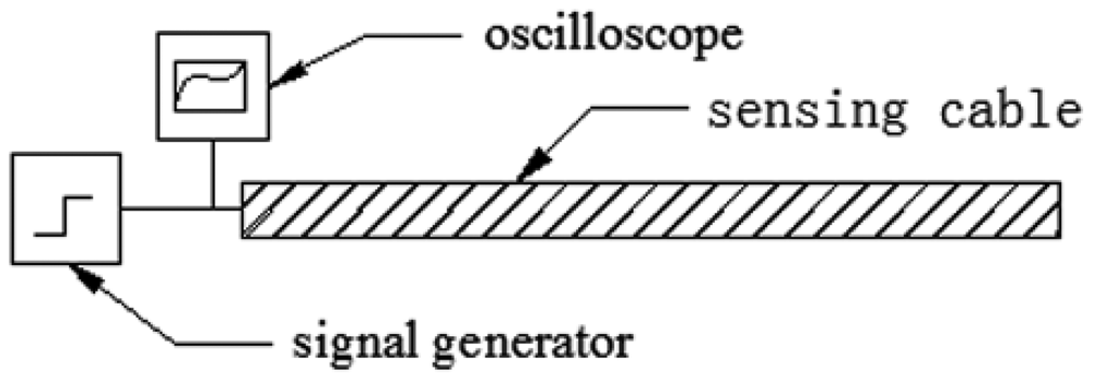 According to Equation (1), the impedance characteristic decides the TDR sensing cable's measurement characteristic. If ZL > ZC, a positive reflected signal will be found in the reflected signal waveform. If ZL < ZC, a negative signal will be received. Cables with different impedance characteristic can detect different parameters. In order to detect stretching ground surface deformation, a TDR sensing cable's impedance should change when the cable is stretched by ground surface deformation.