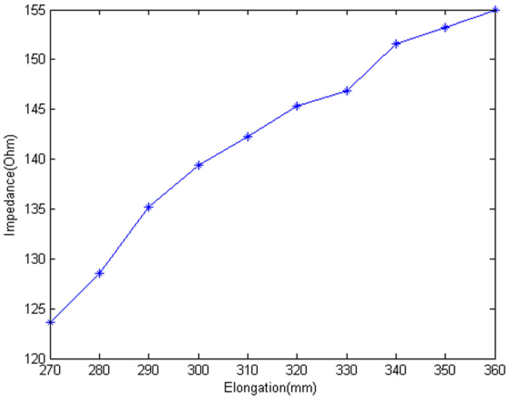 Until now the relationship between elongation and impedance has been discussed through transmission-line theory. An impedance experiment is done here to verify the theoretical analysis. Figure 10 is the illustration of the impedance test.