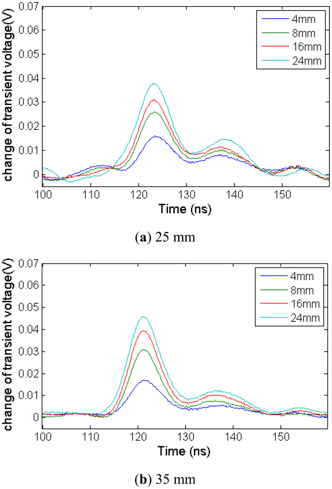 Figure 18 shows that there is a difference between two initial transient voltage waveforms. It means that the uncertainty of TDR device will affect the difference waveform whether deformation is happened.