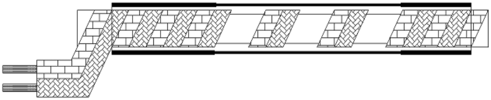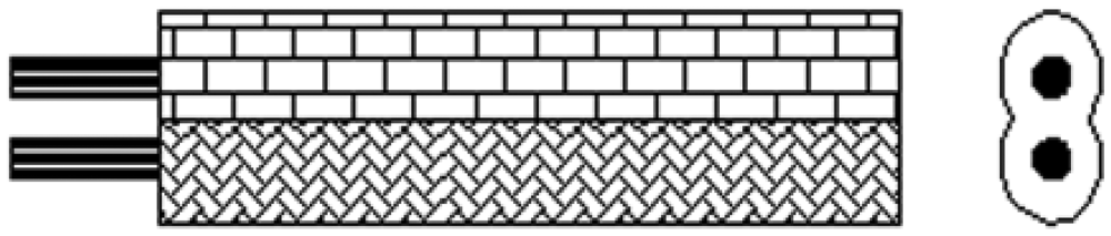 The parallel wires have a plastic sheath as shown in Figure 5, so the distance between two wires in the parallel wires is fixed. Because of its unique structure, EHTSC has two special characteristics. First, it has good elasticity compared with coaxial cable, parallel cable and optical fiber. As shown in Figure 6, when EHTSC is stretched, the helical wires' pitch increases, the silicone rubber rope's diameter becomes smaller and the silicone rubber pipe becomes thinner, but the helical wires are not broken during this process, so EHTSC can have a much bigger deformation range compared with optical fiber and other traditional TDR sensor cables. Second, the EHTSC's impedance will increase when the pitch of the helical wires increases. The distributed deformation detection ability is based on this characteristic. It will be emphatically discussed in this paper. When fixed along a hill's surface, this TDR sensing cable will be stretched if a landslide happens.