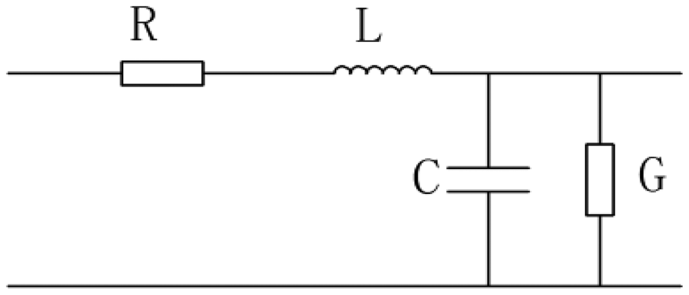 The TDR sensing cable can be modeled as the circuit shown in Figure 7, where R is the distributed resistance, L is the distributed inductance, C is the distributed capacitance and G is the distributed conductance.