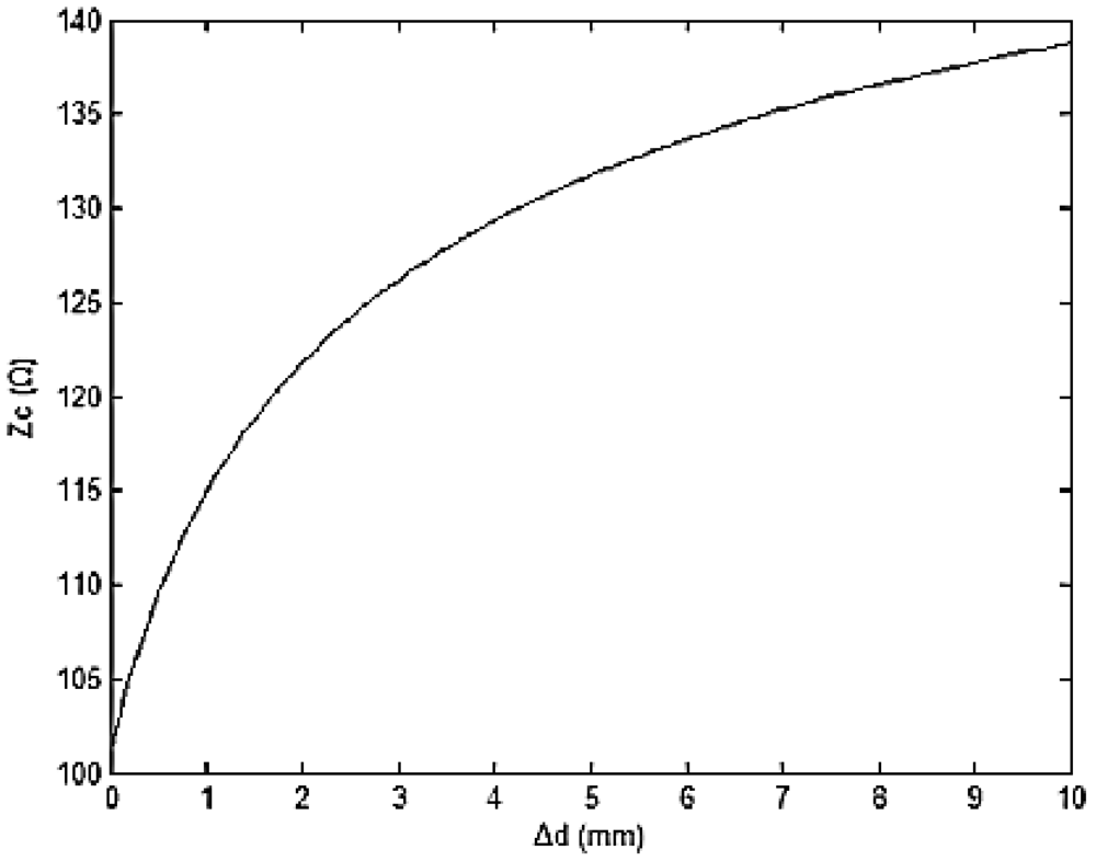 In the initial state, da = db = d. According to Equations (3), (5) and (6), EHTSC's impedance can be written as: