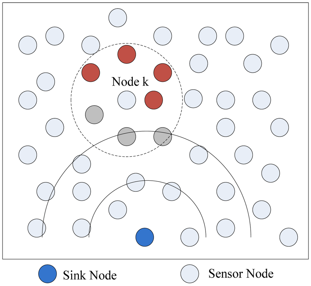 All sensor nodes are uniformly deployed in a two-dimensional area. And there is only one sink node in network to collect data sensed by sensor nodes.