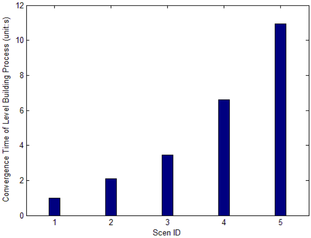 Figure 16 shows the convergence rate of level building process in each scenario. With the increase of network scale, the total time of the process becomes longer.