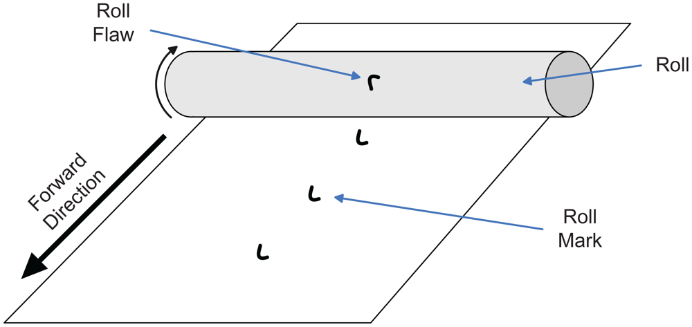 Periodical Defect: A set of individual defects on the same product that have been generated periodically by the same defective roll. In order to be considered a periodical defect, all individual defects within the set must fulfill the following conditions: