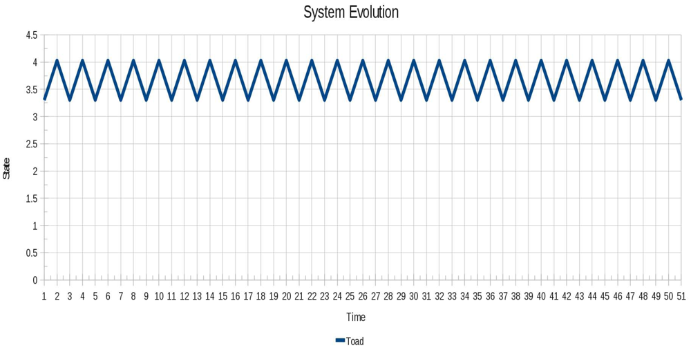 As for instance 3 (Toad), the oscillatory behavior shown in Figure 10 looks very similar to instance 1 (Blinker).