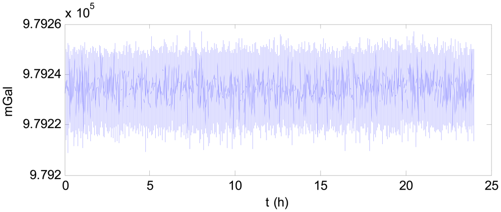 The gravimeter was placed on a marble platform, and static data were recorded. Because of the inertial sensors, the system must be preheated after being turned on to work normally. The system was kept working for 104 days from 25 February 2011 to 8 June 2011. During testing, the state of the system was checked three times a day. These checks indicated that the system was free of errors for the duration of the test, indicating good reliability.