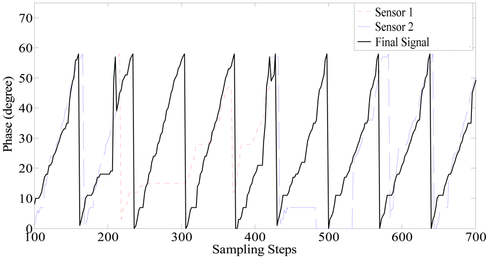 Figure 4 shows the phase signal waveforms of a positioning sensor recorded during a test run.