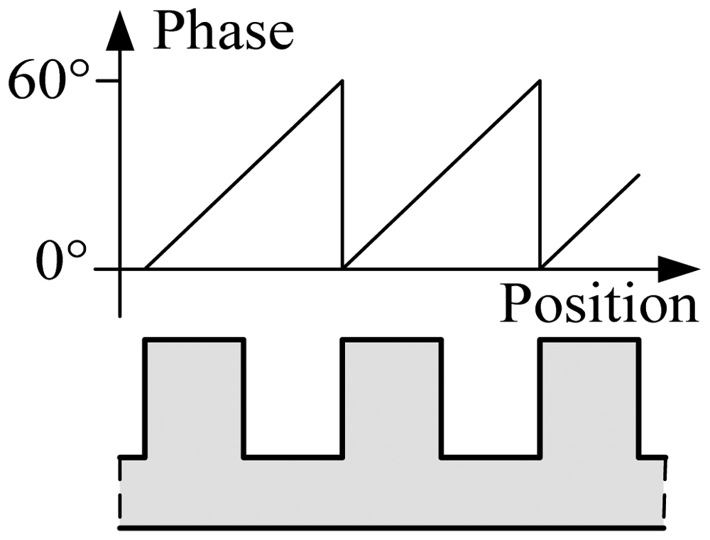 A magnetic pole period of the 3-phased windings contains six tooth-slot periods as shown in Figure 1(b). Thus, the positioning in a tooth-slot period can be denoted by an electrical phase angle between 0° and 60°, as shown in Figure 2.