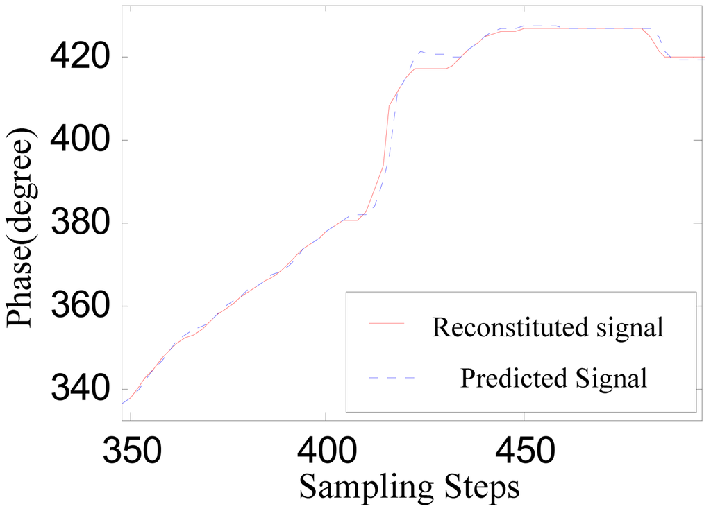 Compared to the original signal pha(k), the reconstructed signal is smoother without weakening some key characteristics. The predicted signal according to the reconstructed signal based on adaptive linear prediction is also shown in Figure 9.
