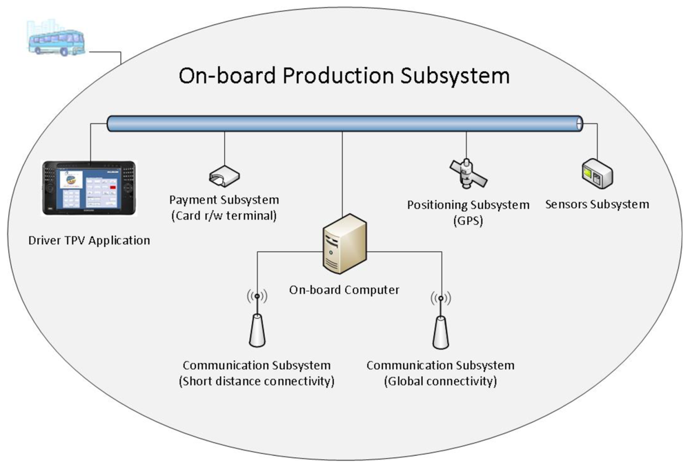 The system assumes that vehicles are equipped with all the elements required for them to be able to control their activity autonomously. In the context of public transport, this means that the vehicle infrastructure has all the resources needed to perform tasks related to the control of payment and planning without a permanent connection to a control centre. From a functional point of view, these elements can be grouped as follows (Figure 1):