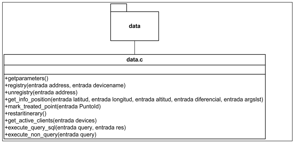Positioning module: this module is in charge of obtaining the coordinates of the positioning system and to check if its current position includes points of interest for tourists. To this end, it has to access the database, so it needs to use the data access module.