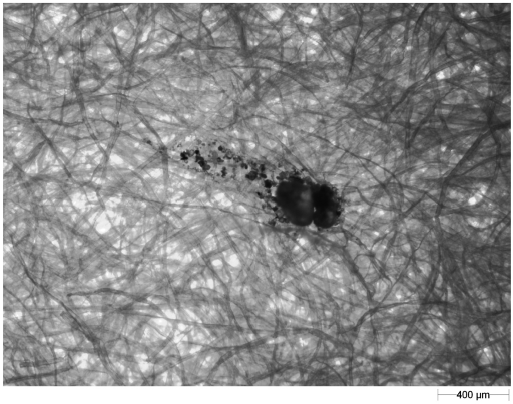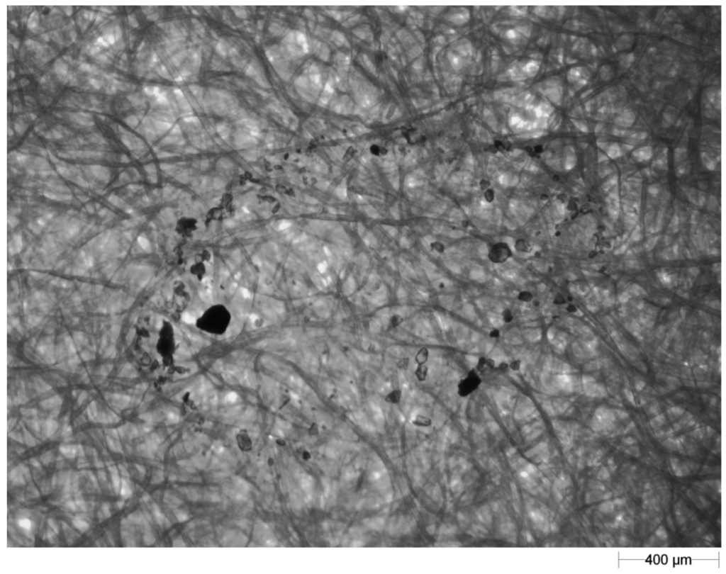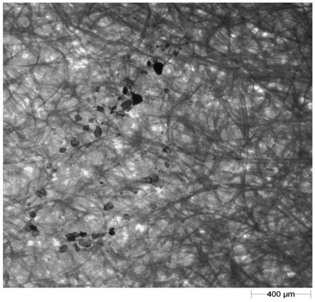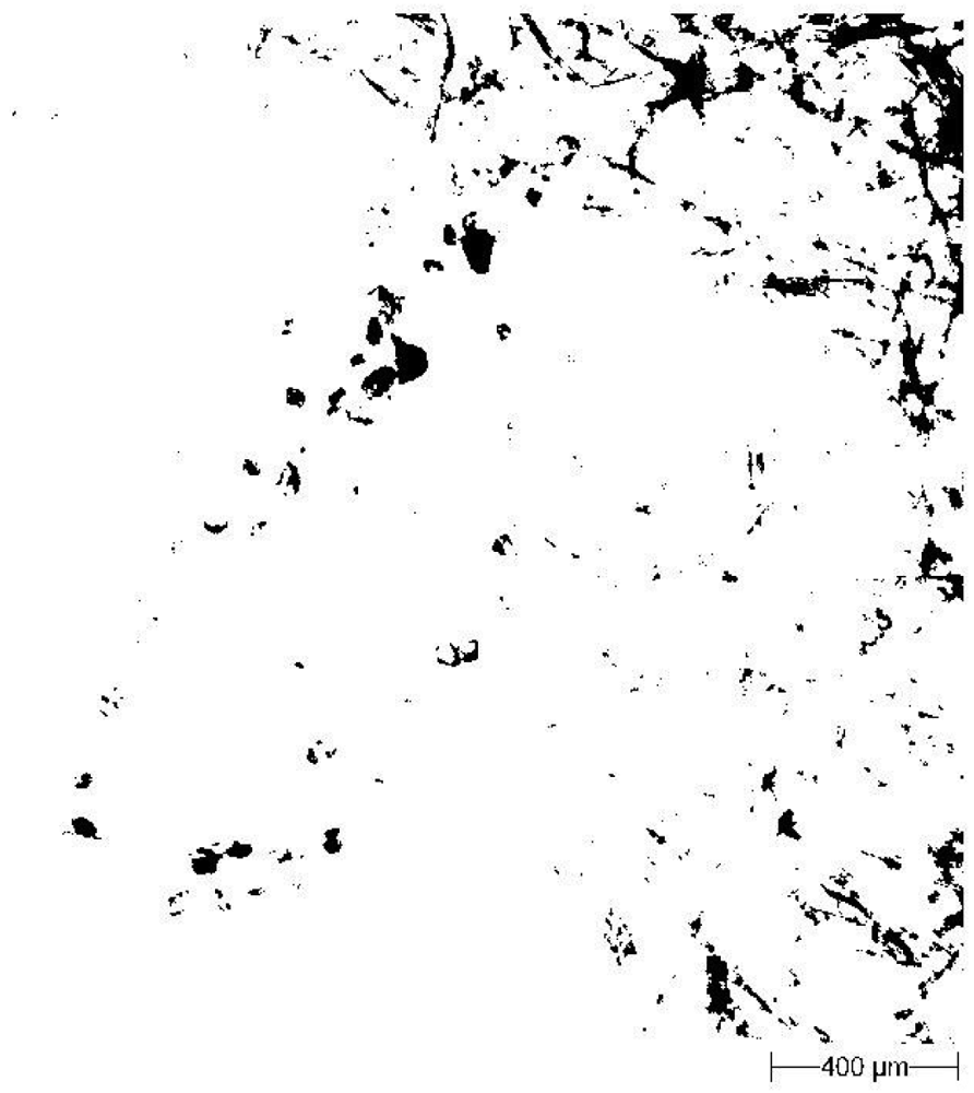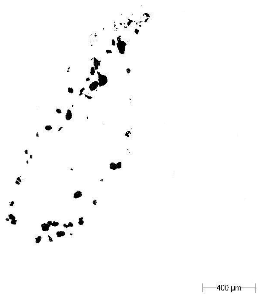 Figure 3. The same soil particles as Figure 2 after filtration of the blotting paper texture at the 0.32 grey level.A light microscope (Morphology G3; Malvern Instruments Ltd.) was employed for image correction of the images in the GIMP program (Figure 4);