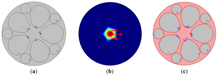 2.4. Grapefruit PCFs Filled with Three Silver Nanowires Irregularly