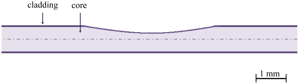 The evanescent radiation power is dependent on the discontinuity in the core/cladding interface, the launch angle and the fiber dimensions. The methods used to increase the interaction between the evanescent field and environmental influences are side polishing (Figure 5), chemical etching, heat treatment and D-optical fibers. In 2008, a reliable method for inducing discontinuities based on a CO2 laser was published [44].