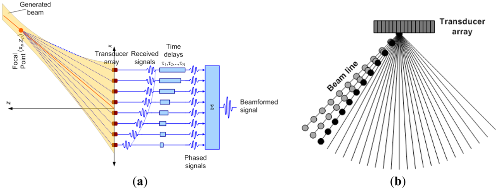- Thomenius, K.E. Evolution of Ultrasound Beamformers. Proceedings of IEEE Ultrasonics Symposium, San Antonio, TX, USA, 3– 6 November 1996; pp. 1615–1622.