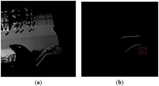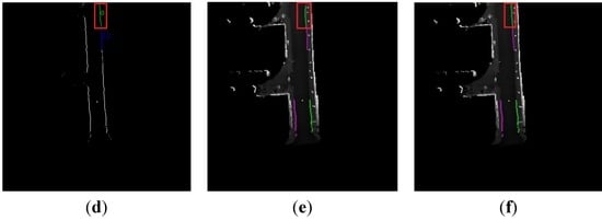 Figure 11(b), the two white lines are selected as the results according to the constraint condition in Section 3.2.1.