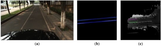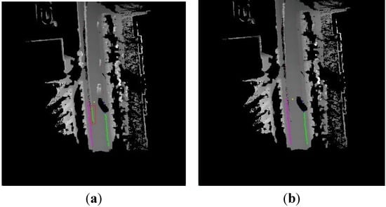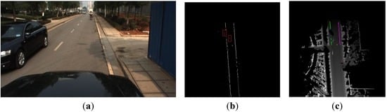 Figure 11(a) presents the corresponding visual image in front of the vehicle and the two obvious straight curbs were seen in