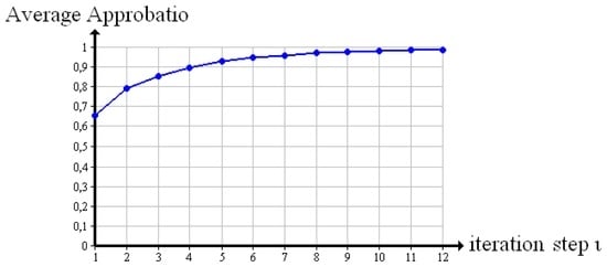 The apparent increase in quality while reconstructing the “cubes” is confirmed by the average approbatio a.Figure 7 shows the course the average approbatio takes from iteration step ι = 1 to iteration step ι = 12. It goes up to 97%. The original verifiable reaches 100%.