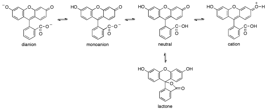 - Klonis, N.; Sawyer, W.H. Spectral properties of the prototropic forms of fluorescein in aqueous solution. J. Fluorescence 1996, 6, 147–157. [Google Scholar]