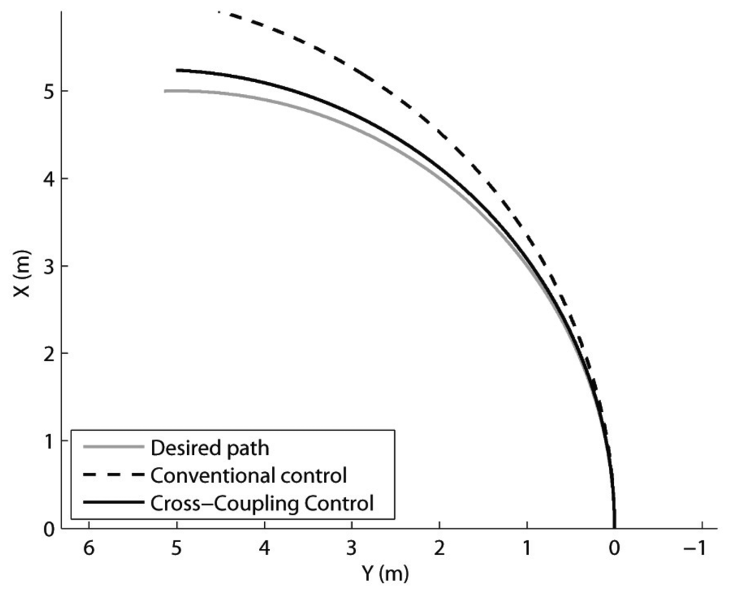 - Feng, L.; Koren, Y.; Borenstein, J. Cross-coupled motion controller for mobile robots. IEEE Control Syst. 1993, 13, 35–43. [Google Scholar]