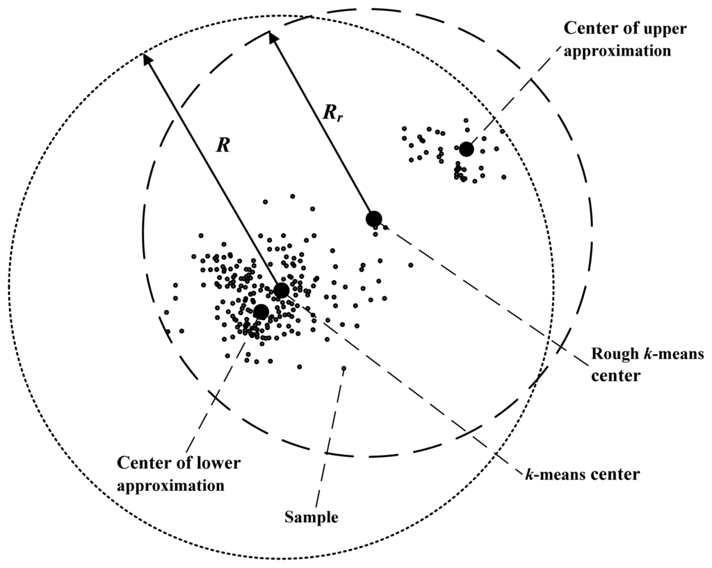 To overcome the problem of isolated points, Pawan and West proposed the rough k-means algorithm []. The rough k-means can solve the problems of nondeterminacy in clustering and reduce the effect of isolated samples efficiently, but it still requires initial centers and the number of clusters as priors. In this paper, we propose to determine the number and initial centers of clusters based on rough sets theory.